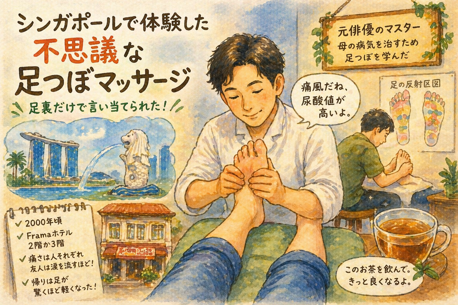 2000年頃、シンガポール出張の合間に訪れた、とある足つぼマッサージ店。そこで体験した出来事は、今でも鮮明に記憶に残っています。医学なのか経験なのか、それとも別の何かなのか――少し不思議な体験でした。